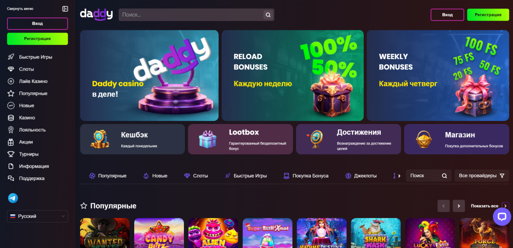 Официальный сайт Daddy casino: игровые возможности